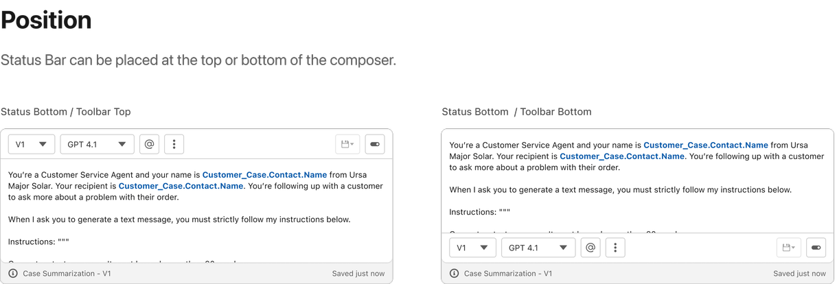 This component will provide a consistent UI for prompt authoring that can be used anywhere from the Lightning App Builder to deep within custom applications. This will accelerate AI delivery for internal teams and expand access to prompt engineering for non-admin users.
